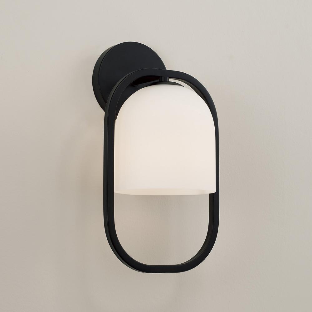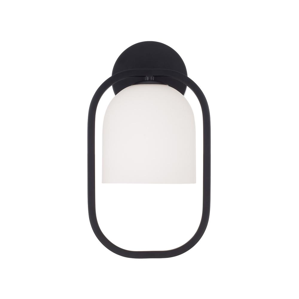 DETAILS: Curved contours in Soft White glass create sophisticated, modern style, accented by the contrast of the Matte Black finish.
