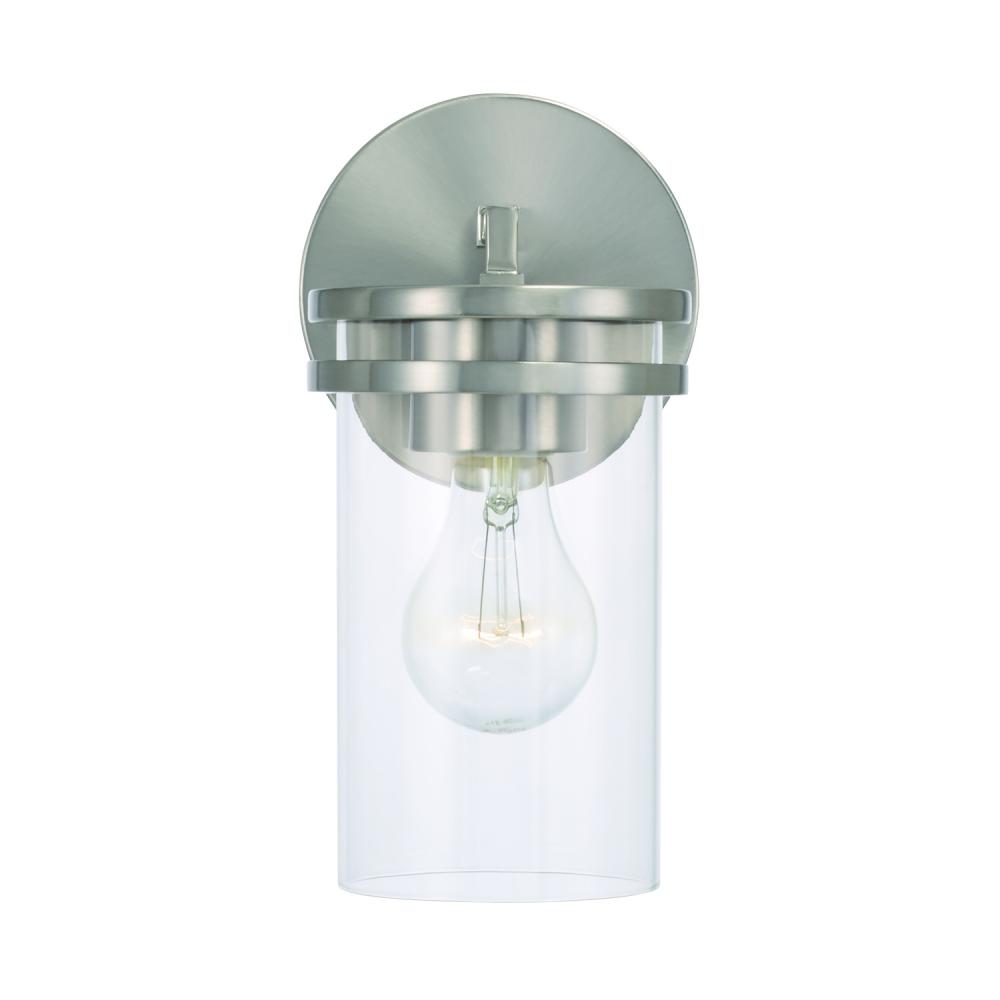 5"W x 9.75"H 1-Light Sconce in Brushed Nickel with Clear Glass