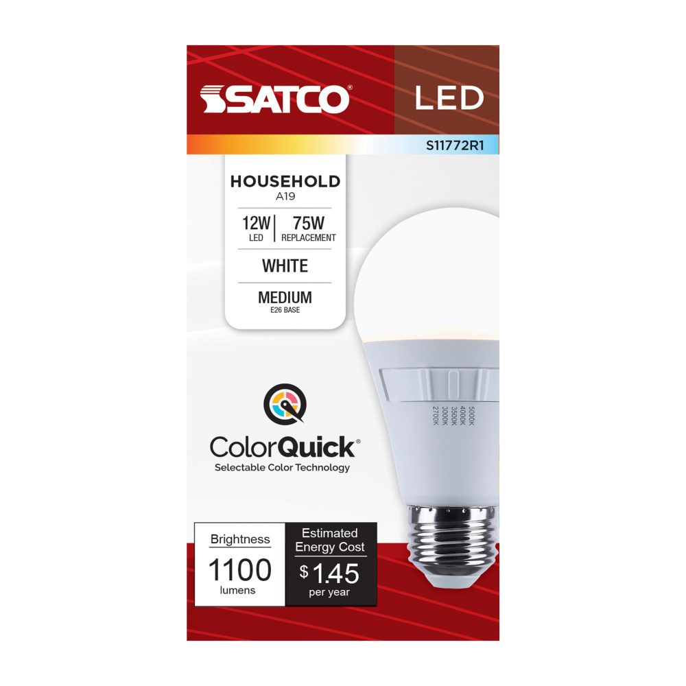 Elevate your everyday lighting with SATCO NUVO's S11772R1 12W LED A19 bulb-designed for flexibility, clarity, and dependable performance. With 5 CCT selectable options from a cozy 2700K to a vibrant 5000K, you can tailor the ambiance to suit any enviro
