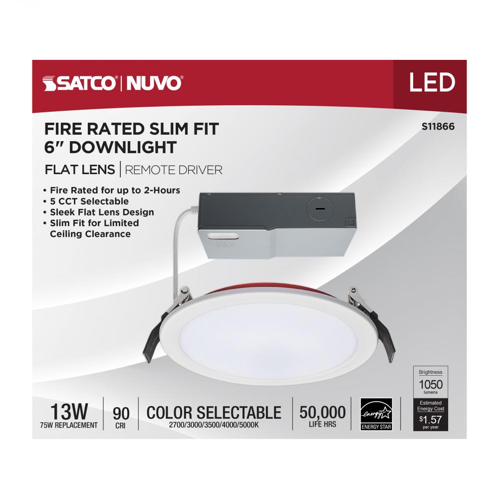 SATCO NUVO's 4 inch Flat Lens Fire Rated Downlight is the perfect solution for installations with low ceiling clearance. Designed to provide exceptional illumination, this downlight provides two hours of protection in the event of a fire. Increase safe