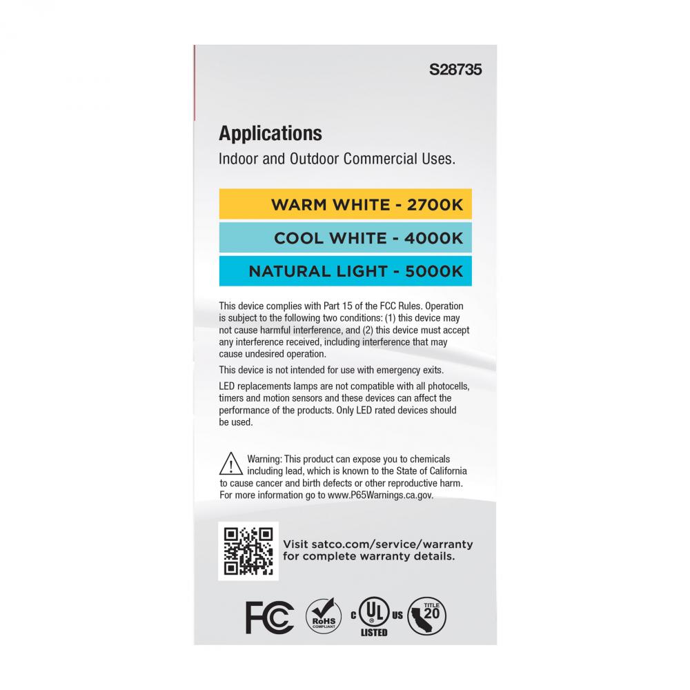 SATCO NUVO's LED Hi-Pro A21 Lamps offer ColorQuick convenience ideal for commercial projects. Choose from 2700K/4000K/5000K color temperatures at installation to achieve the desired atmosphere for the environment. Designed to work in 120V to 277V fixtu