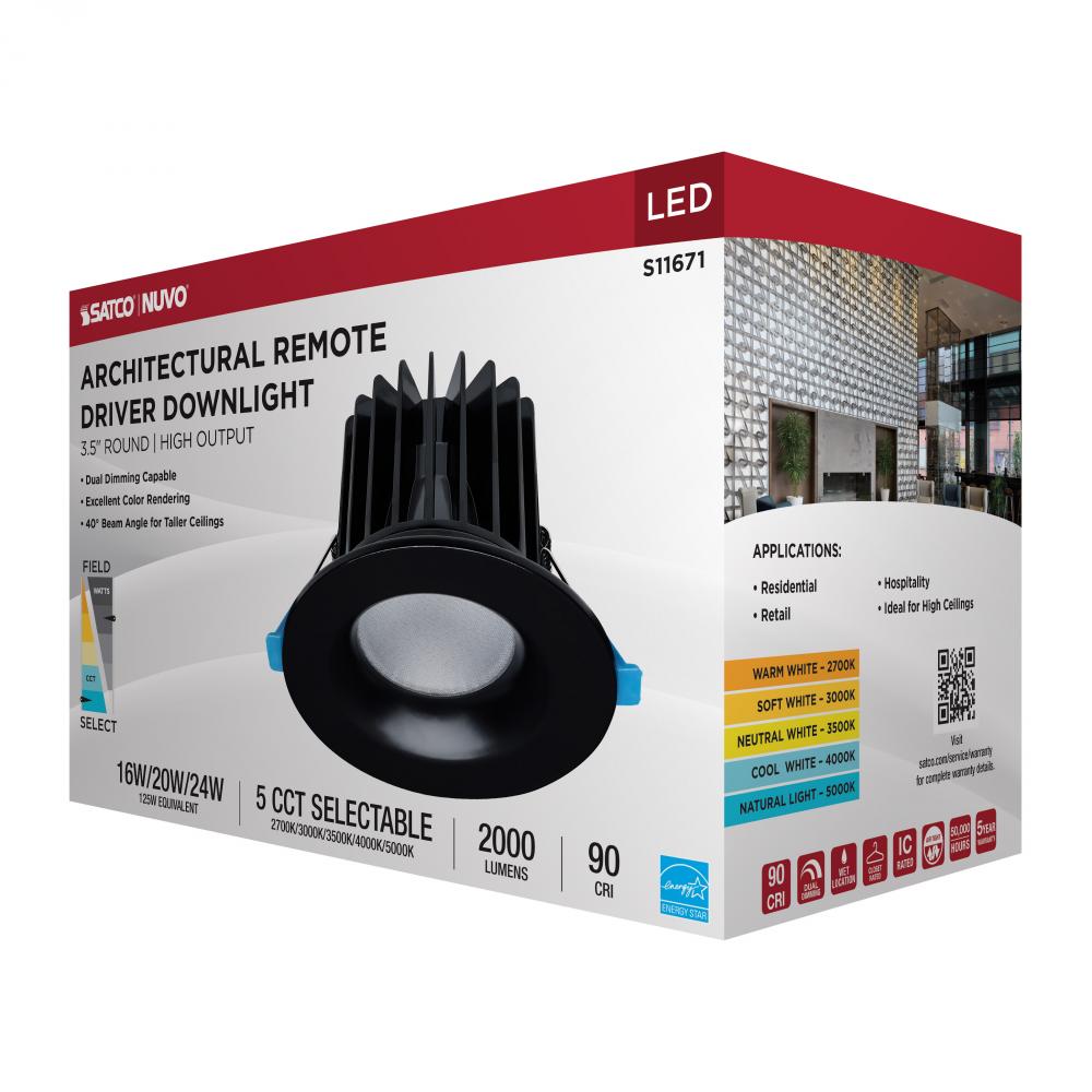 SATCO NUVO LED Architectural Downlights offer a high lumen output, making them ideal for high ceiling applications. With a 40-degree beam angle, these downlights provide ample illumination in residential, hospitality and retail applications. Choose from th