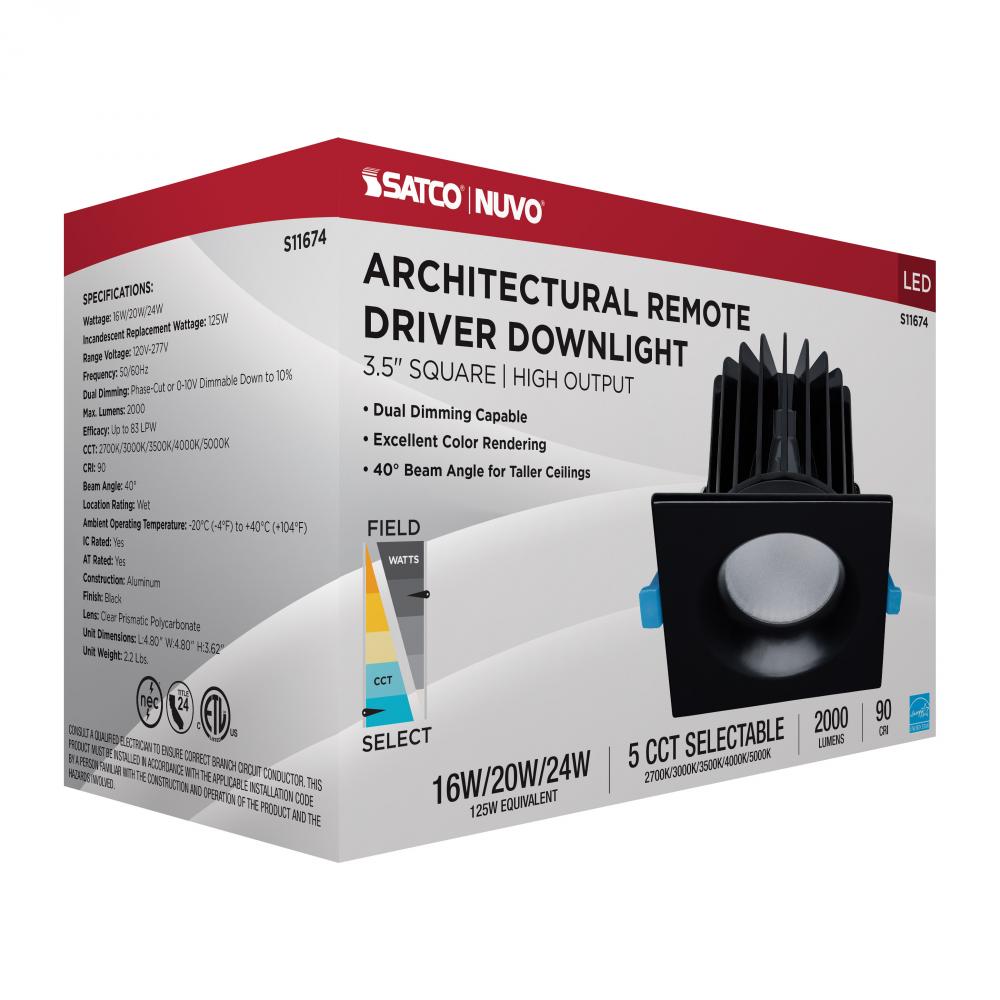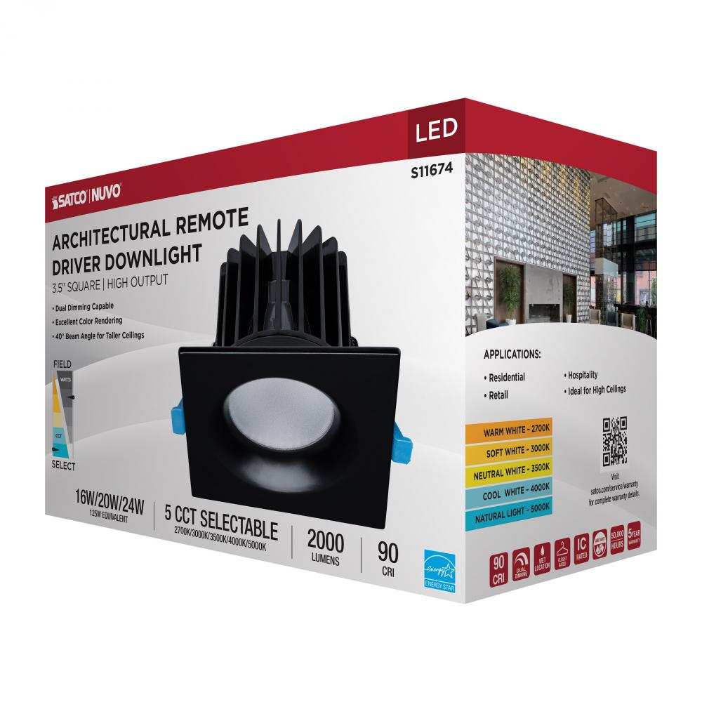16/20/24 Watt LED Remote Driver Downlight; 27K/30K/35K/40K/50K CCT; Field Selectable; Square; Black