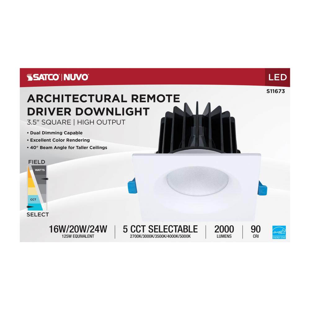 16/20/24 Watt LED Remote Driver Downlight; 27K/30K/35K/40K/50K CCT; Field Selectable; Square; White