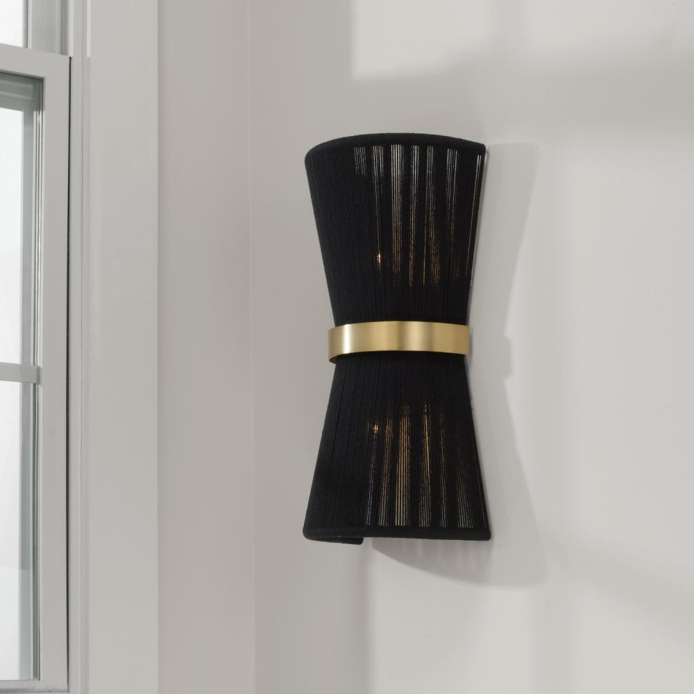 Invite contrast, drama, and glamour with the Cecilia Sconce. Sitting flush against the wall, the hourglass silhouette is hand-wrapped in Black Rope creating artisan texture, while the slightly distressed Patinaed Brass adds dimension.