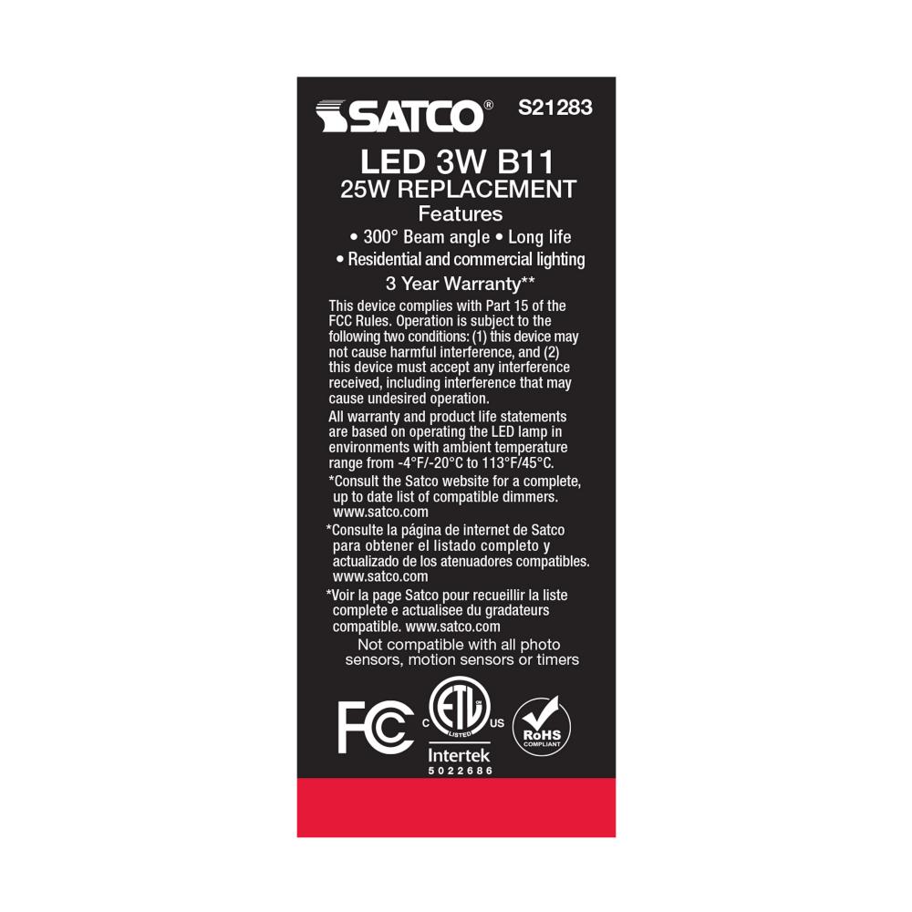 Satco's S21283 3-watt LED lamp is traditional, yet contemporary with its sleek finish and energy saving LED technology. Elegantly illuminate any room in the house with this dimmable, frost finished bulb. Sophisticated and modern, this lamp delivers 15,