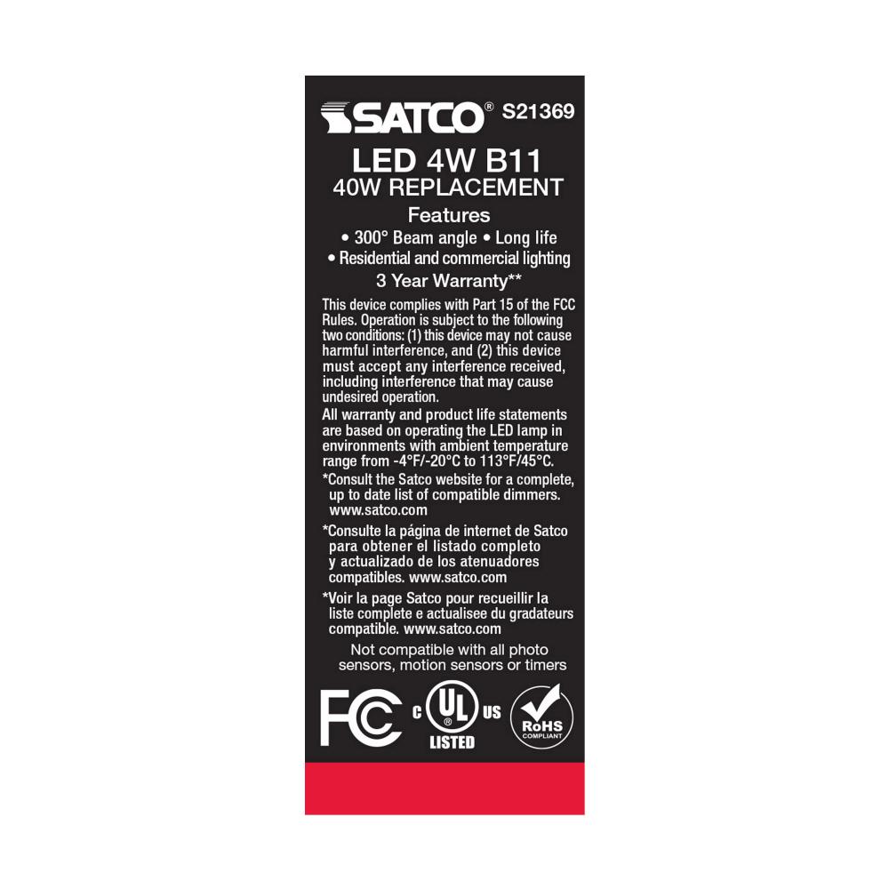 Satco's S21369 4-watt, LED lamp is traditional, yet contemporary with its vintage style and energy saving LED technology. Elegantly illuminate any room in the house with this dimmable, clear bulb. Sophisticated and modern, this lamp delivers 15,000 hou