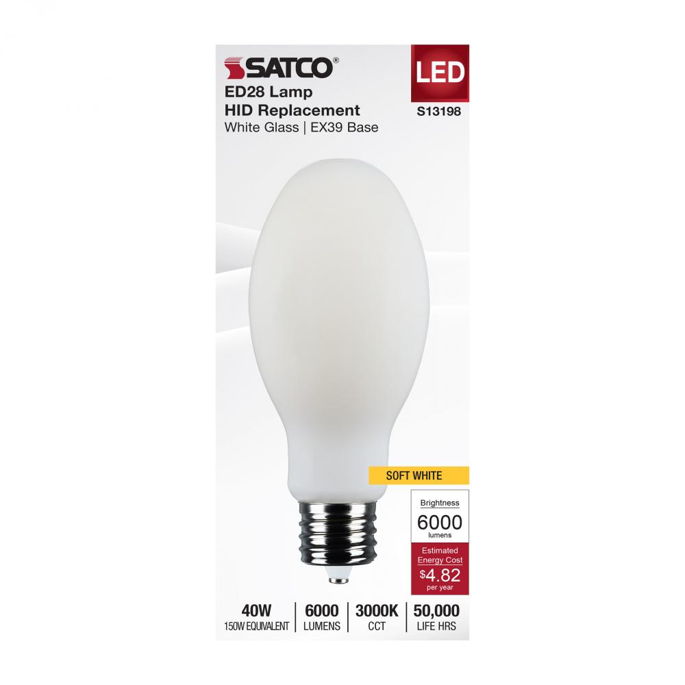 Easily upgrade dated HID lamps with energy saving LED bulbs. SATCO's long-lasting S13198 ED28 HID replacement lamp offers outstanding efficacy in applications where low-maintenance is the goal: streetlights, warehouses, retail, gymnasiums and more. Off