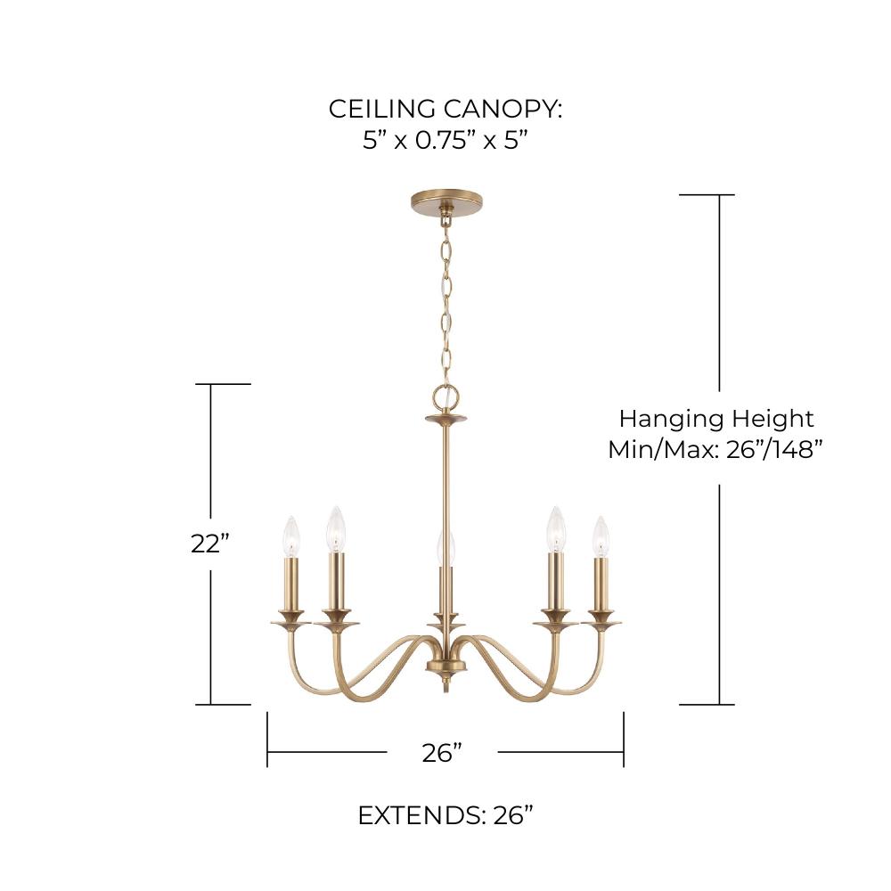 DIMENSIONS: Overall: 26"W x 25"H; Adjustable Hanging Height: 26" - 148"; Includes 120" Chain; 180" Wire