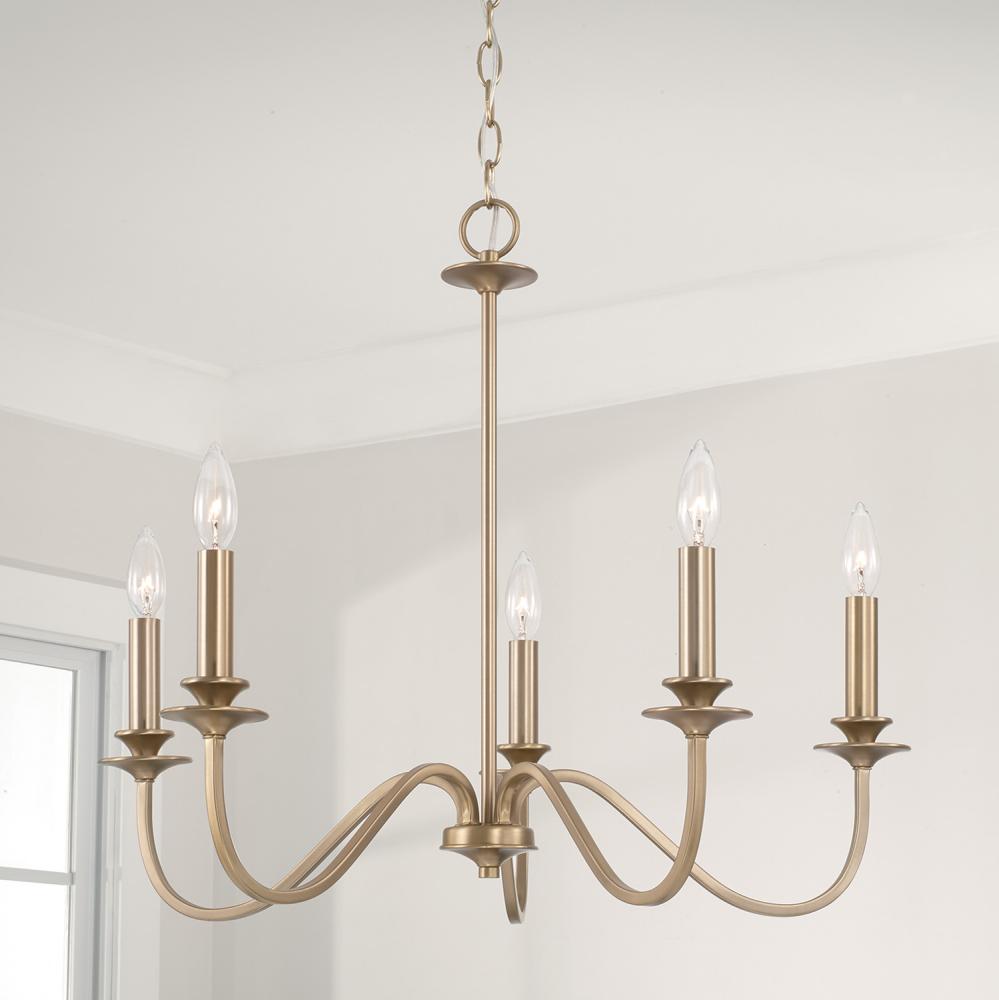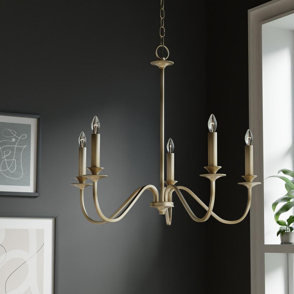 The iconic silhouette of the Weston Chandelier evokes mid-century style with the Matte Brass finish. The curved arms create sculptural intrigue and draw the eye upward for a classic aesthetic.
