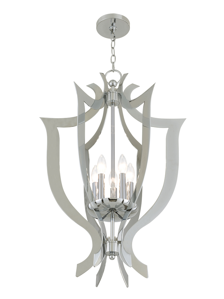 This Euro-Chic Dimensional Five Light Chandelier Features A Laser-Cut Metal Openwork Frame Enhanced With Polished Chrome Finish.