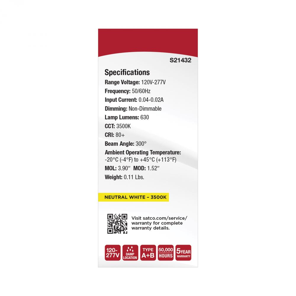 SATCO NUVO's S21432 CFL replacement lamp delivers reliable, energy-efficient performance in a compact and versatile PL shape. This 5-watt model is designed to replace 13-watt CFLs, providing a 3500K neutral white light with a G24d base. A+B dual mode b