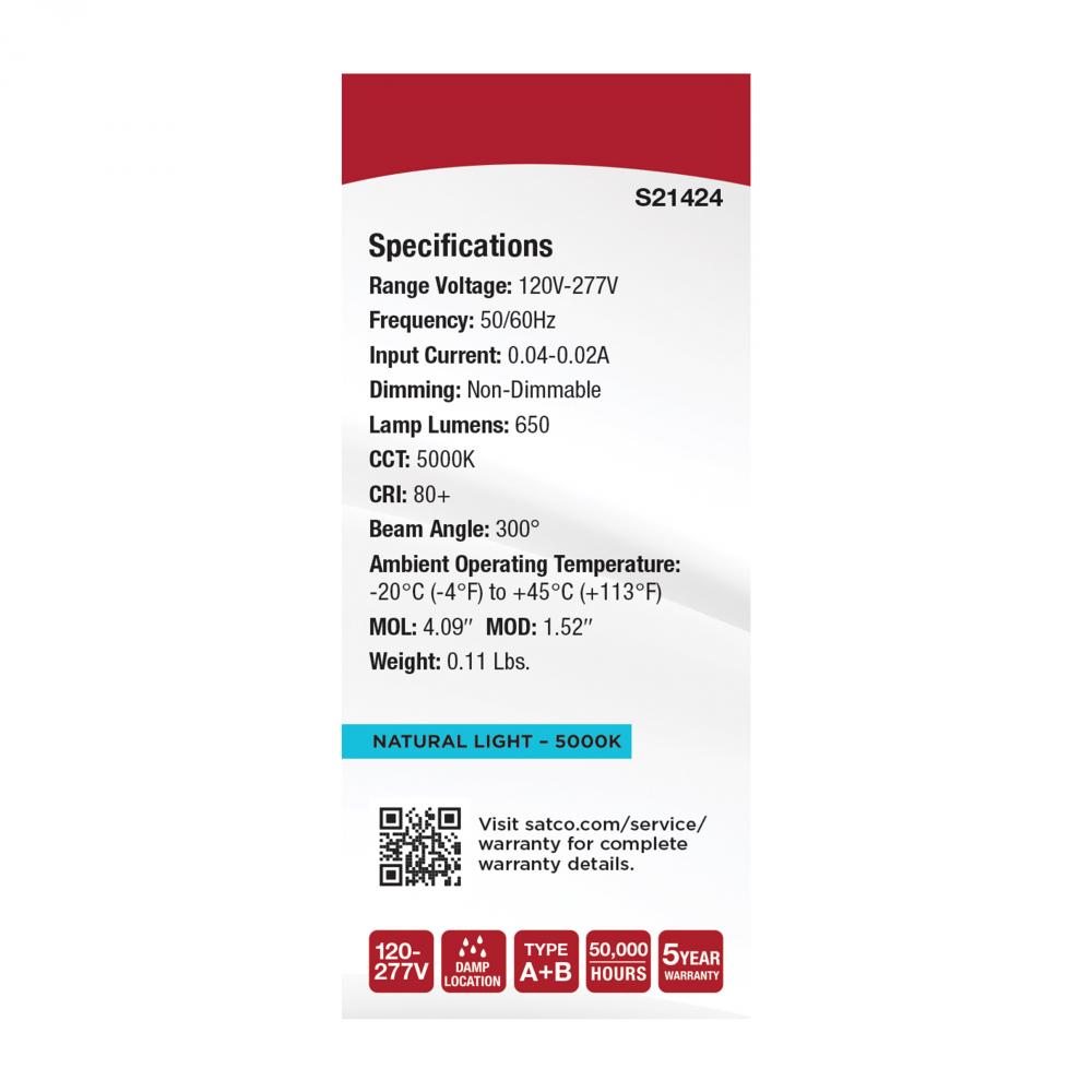 SATCO NUVO's S21424 CFL replacement lamp delivers reliable, energy-efficient performance in a compact and versatile PL shape. This 5-watt model is designed to replace 13-watt CFLs, providing a 5000K daylight light with a GX23 base. A+B dual mode ballas
