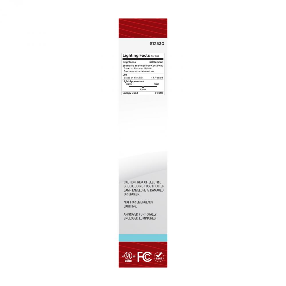 Satco's S12530 5-watt, LED lamp is traditional, yet contemporary with its vintage style and energy saving LED technology. Elegantly illuminate any room in the house with this dimmable, clear bulb. Sophisticated and modern, this lamp delivers 15,000 hou