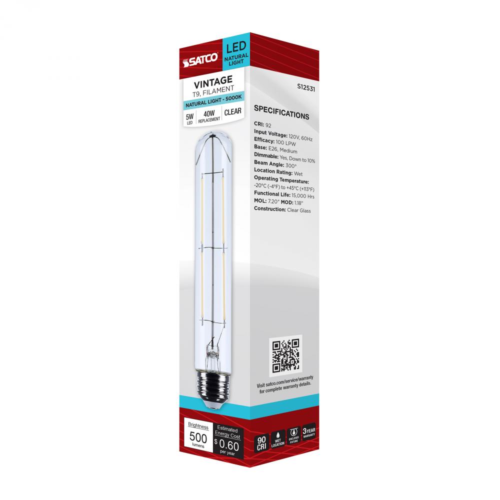 Satco's S12531 5-watt, LED lamp is traditional, yet contemporary with its vintage style and energy saving LED technology. Elegantly illuminate any room in the house with this dimmable, clear bulb. Sophisticated and modern, this lamp delivers 15,000 hou