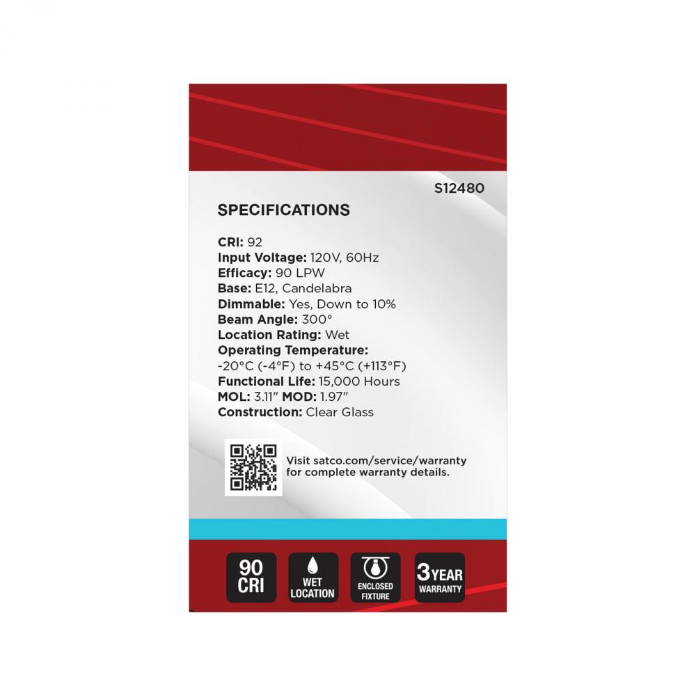 Satco's S12480 5.5-watt LED lamp is traditional, yet contemporary with its vintage style and energy saving LED technology. Elegantly illuminate any room in the house with this dimmable, globe shaped bulb. Sophisticated and modern, this lamp delivers 15