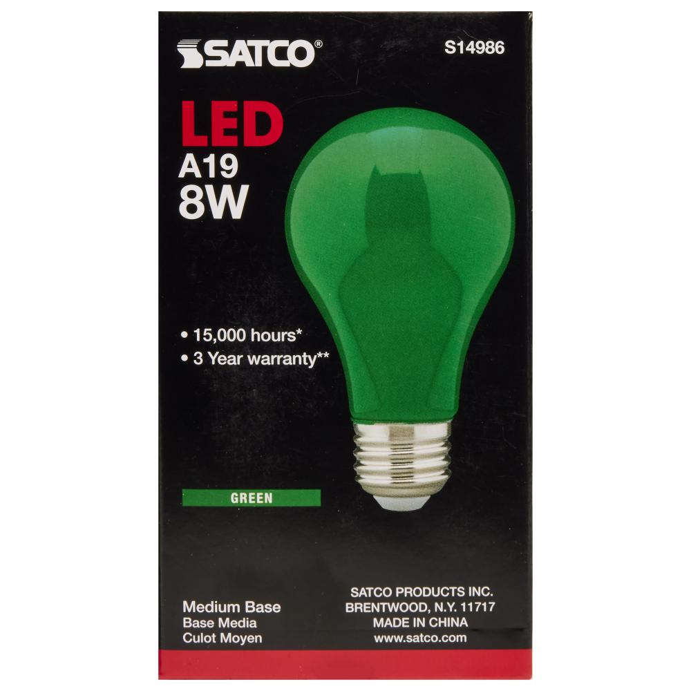 Satco's S14986 8 watt A19 ceramic LED bulb is perfect for decorative lighting, holidays, support and celebratory lighting. The ceramic green bulb features a medium base and a 360 degree beam spread. The dimmable lamp provides 15,000 hours of LED lighti