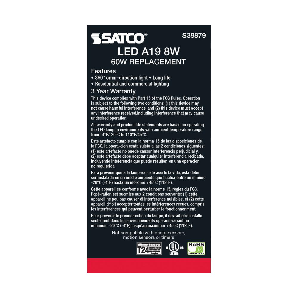 SATCO NUVO's S39879 8-watt LED lamp is traditional, yet contemporary with its vintage style and energy saving LED technology. Elegantly illuminate any room in the house with this dimmable, clear bulb. Sophisticated and modern, this lamp delivers 15,000