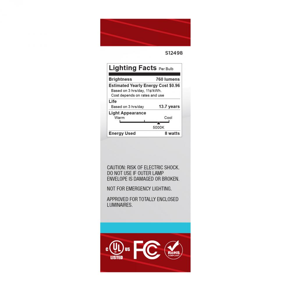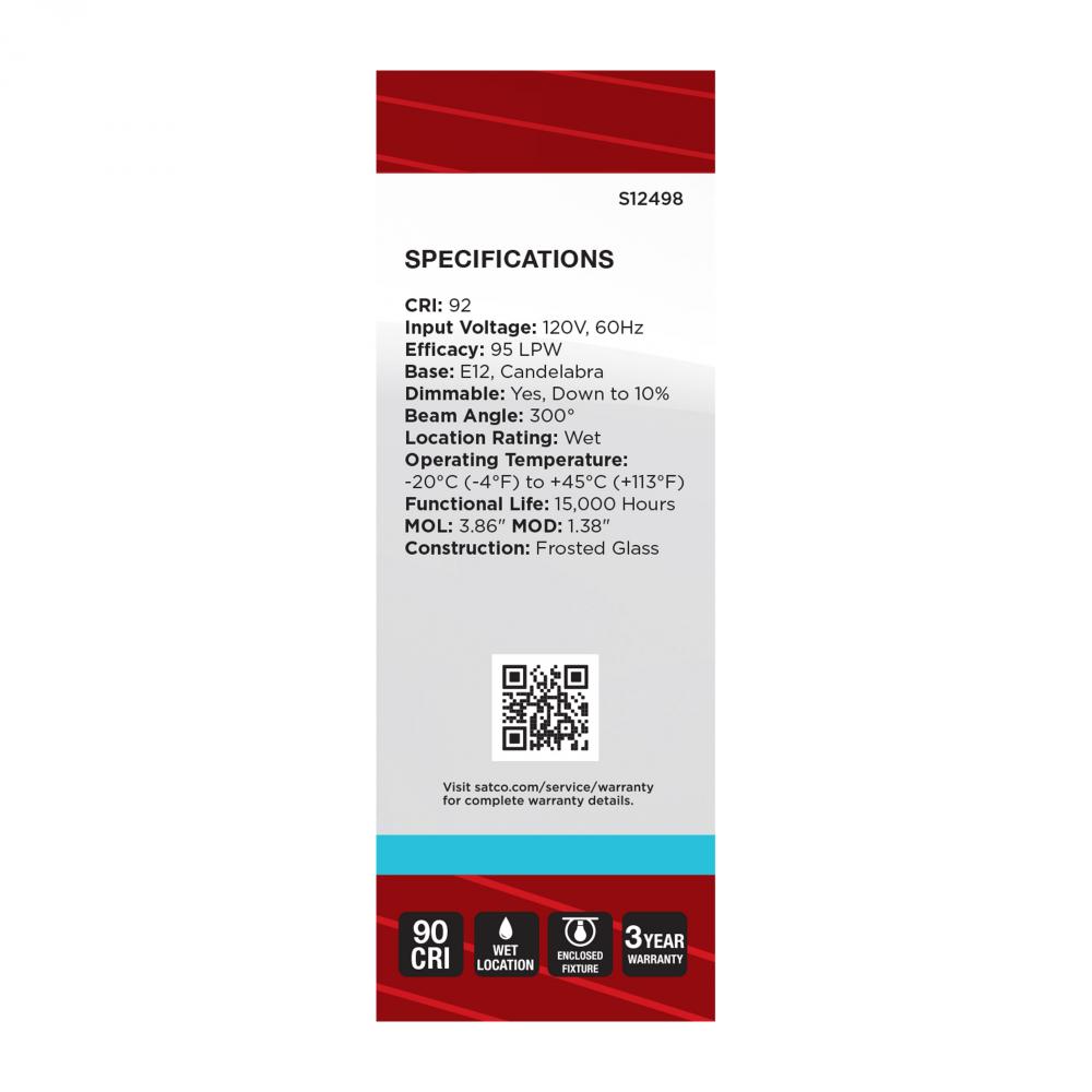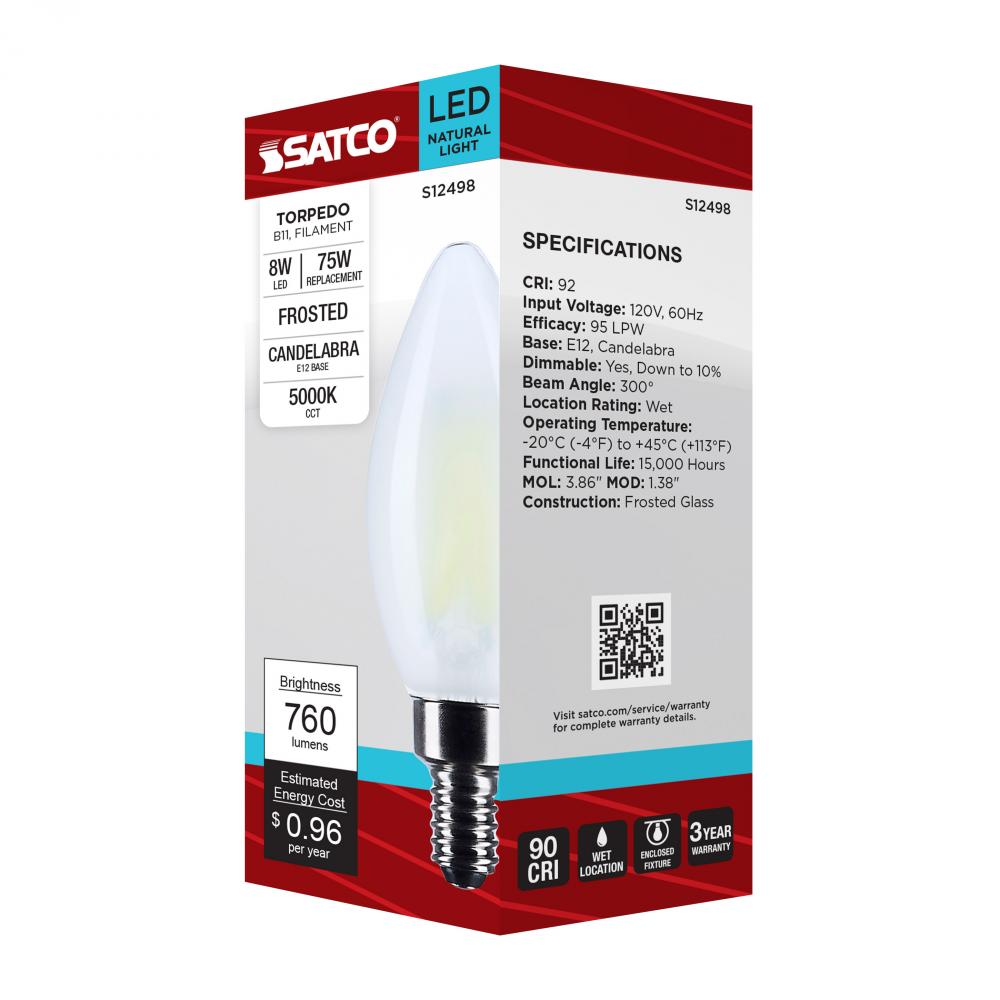 Satco's S12498 8-watt LED bulb is an elegant lighting solution for the home. Perfect for chandeliers, use this dimmable lamp to illuminate living rooms, dining rooms, or anywhere else where a traditional look will complement decorative needs. The bulb