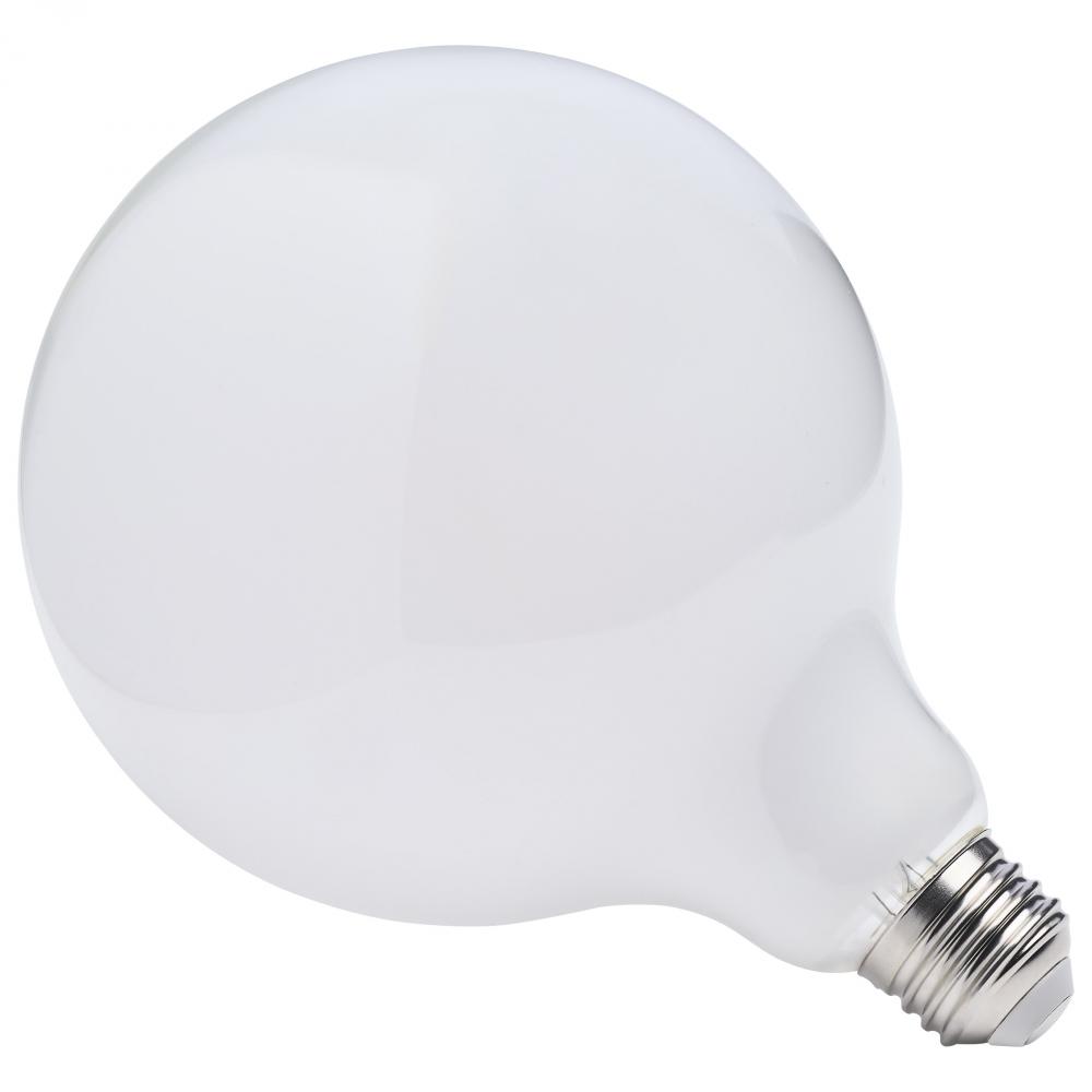 The S12156 G40 Dim to Warm bulb from SATCO NUVO combines large-scale elegance with gentle dimming from 3000K to 2000K. The soft white finish diffuses warm, even light, perfect for decorative and hospitality settings. With a standard E26 base, 90 CRI, and 3