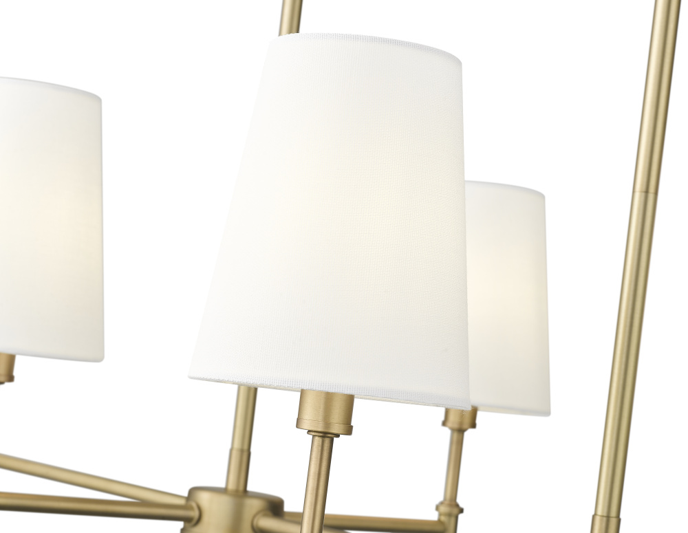 Refined and graceful, the Adorra Family puts a modern twist on classic Regency styling and creates a thoughtful design statement throughout any home. Crisp white linen shades complement the beautifully detailed fixtures in polished nickel, vintage brass, or matte black. Available as a 3-light semi-flush mount, 3-light candelabra, or 1-light sconces, these fixtures enhance any interior design scheme with a polished touch.