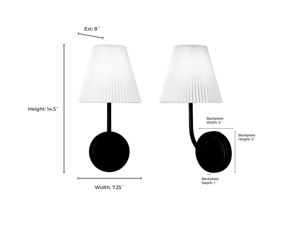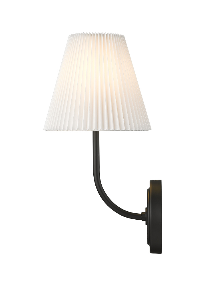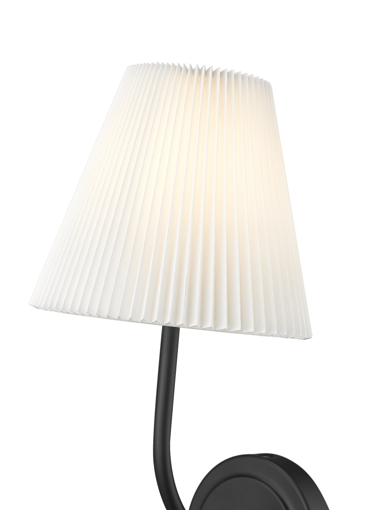 The Ami Family beautifully synthesizes a modern profile with traditional styling to create a thoroughly unique design aesthetic. The fixtures, finished in either matte black or vintage brass, are comprised of crisp, clean lines arcing gently upwards and capped with vintage style white fabric pleated shades. Available as 1-light sconces, 2-light island pendants, and 4-light chandeliers, these fixtures create a light and airy aesthetic for any space.