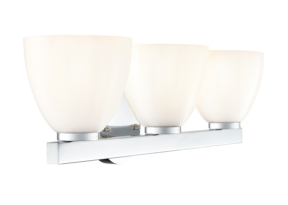 Vanity lighting is taken to a bold and dazzling new level with the Apria Family. These fixtures, available in chrome, matte black, or modern gold, feature a circular backplate juxtaposed against a robust light bar featuring of 2, 3 and 4-light options. The entire profile is punctuated with shiny opal glass globes suspended from circular casings, providing a radiant glow perfect for both ambient and task light.