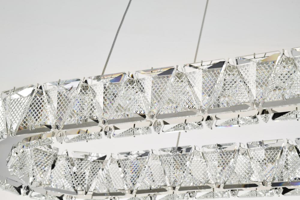 Featuring luxurious K9 crystal, each piece of the Asher 62-2443 LED oval island light sparkles with brilliance and sophistication, reflecting the light to mesmerizing effect. Finished in polished nickel, it offers a refined contrast that enhances its cryst