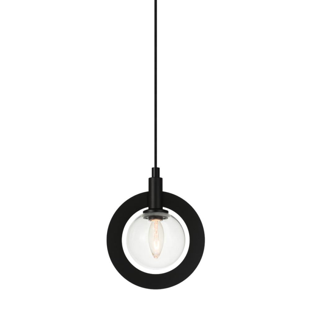 A stunning yet simple pendant designed with circular elements. Astro features Clear or Opal Glass, surrounded by a bold metal ring. Available in 2 finishes: Aged Gold Brass and Black.