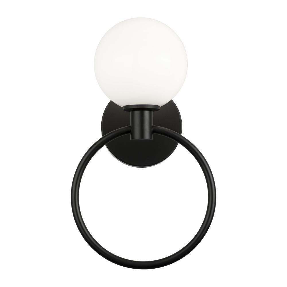 Aerial Quintessential classy light series, the Aerial features a movable ring that provides two looks with just one fixture by moving the ring. Two size pendants and a wall sconce in either Aged Gold Brass or Matte Black both with Opal glass.LIGHTBULBS NOT INCLUDED