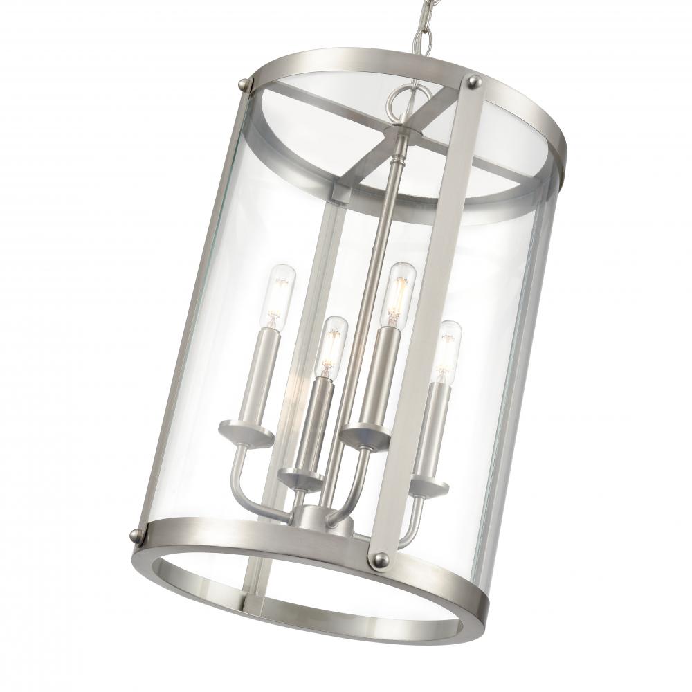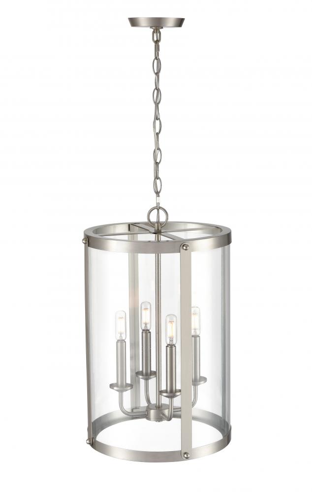 Sparkling clear glass cylinders set into a minimalist steel constructed framework provide abundant light in the Aydenn Collection of pendant lighting. Finished in quintessential matte black or gleaming brushed nickel, these definitive design statements are a bright addition to the foyer or hall.