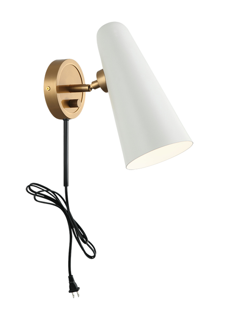 The clean design of this series is inspired by a retro spotlight but with a modern look and finish. The Blink series comes in 2 finishes combinations: Aged Gold Brass with White and Aged Gold Brass with Black. Featuring a dimmable light and adjustable shade, Blink will add an additional modern element.