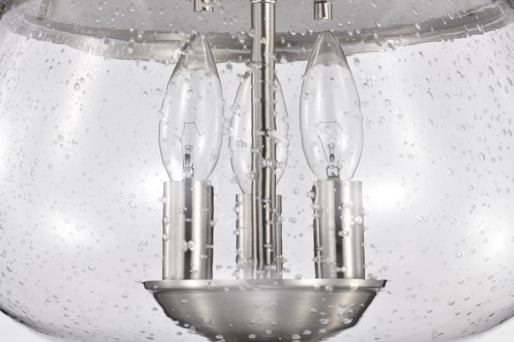Step into a world of sophistication with the Boliver 60-7808 small flush mount, the perfect touch of classic elegance. Expertly crafted in a stunning brushed nickel finish on the fixture body and canopy, this pendant is a tribute to traditional, universal