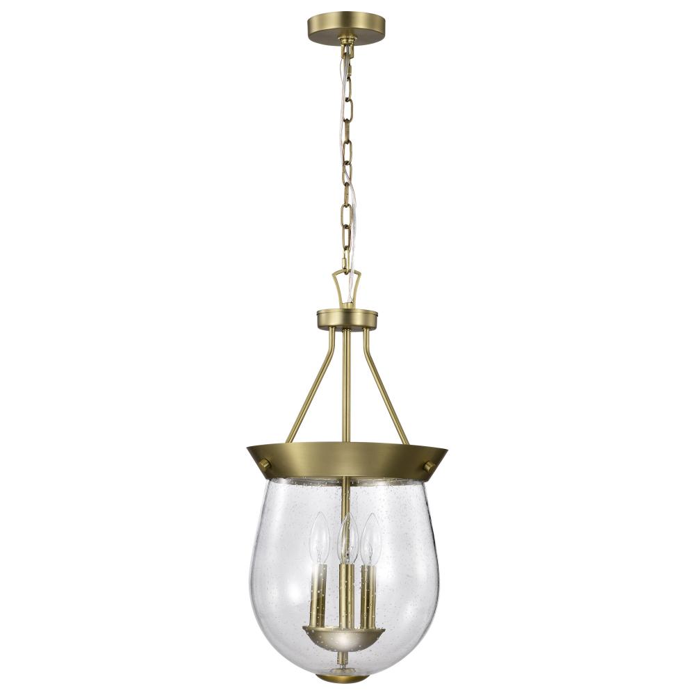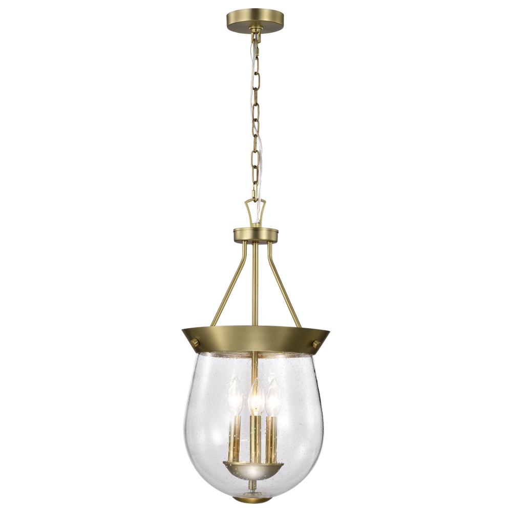 Boliver 3 Light Pendant; 14 Inches; Vintage Brass Finish; Clear Seeded Glass
