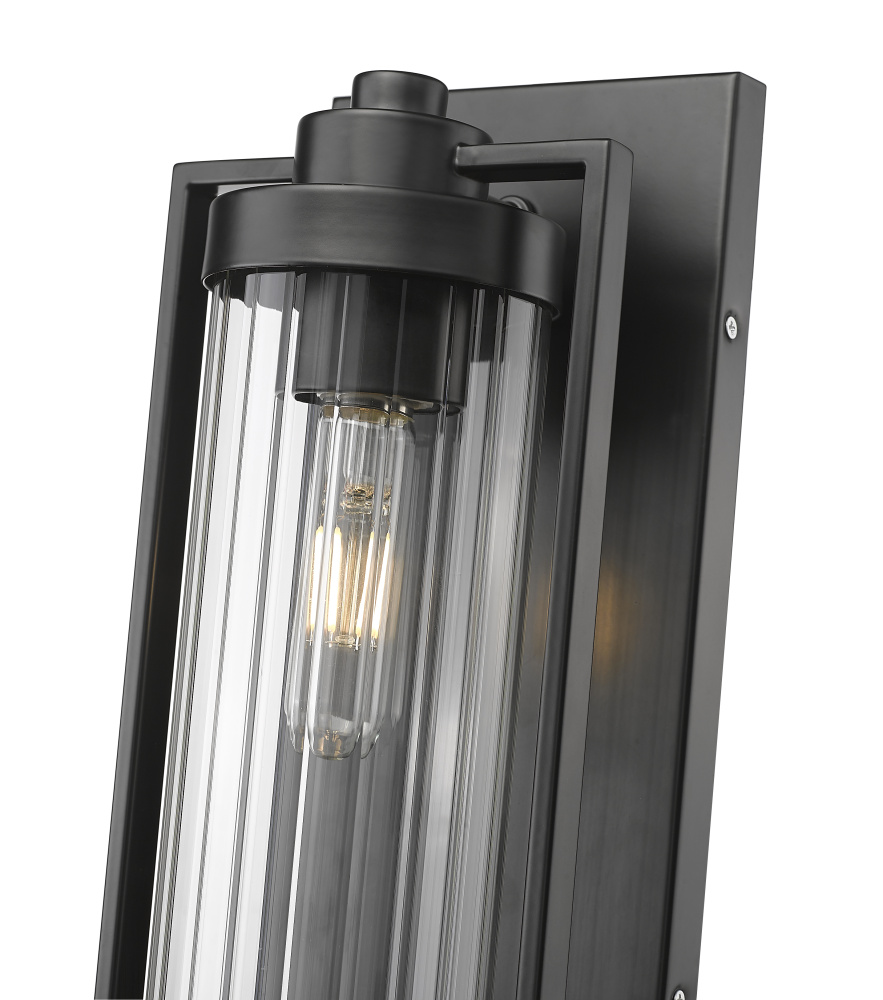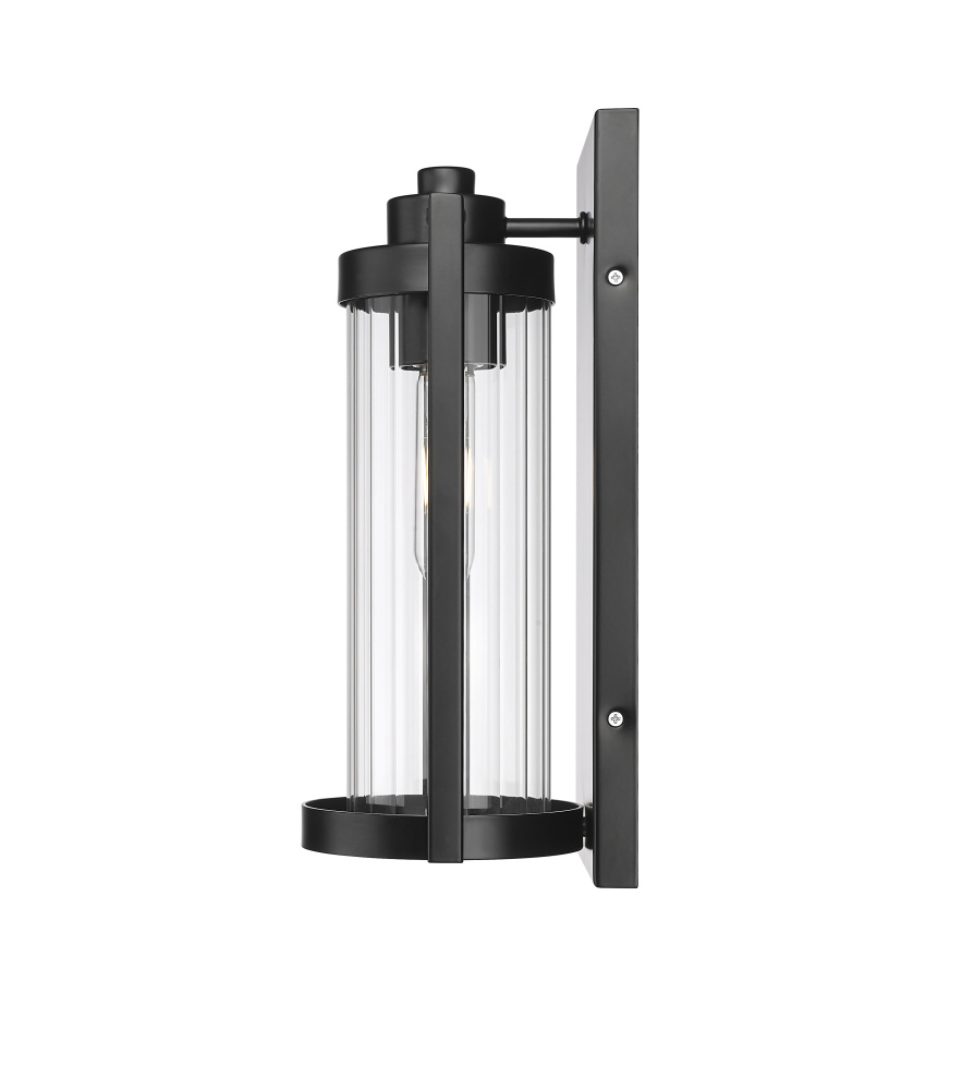Artfully ribbed, clear glass globes infuse the Braselton Family of exterior lighting with an exciting design twist. The ribbing creates a subtly rippled lighting effect without sacrificing clear illumination. Available as either an outdoor pendant or sconce, the fixtures juxtapose angular lines against a classic lantern profile and are finished in powder coat black. Grouped together or installed singularly, these fixtures make a bold design statement for any exterior.