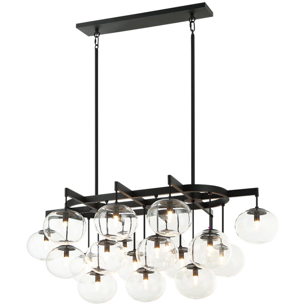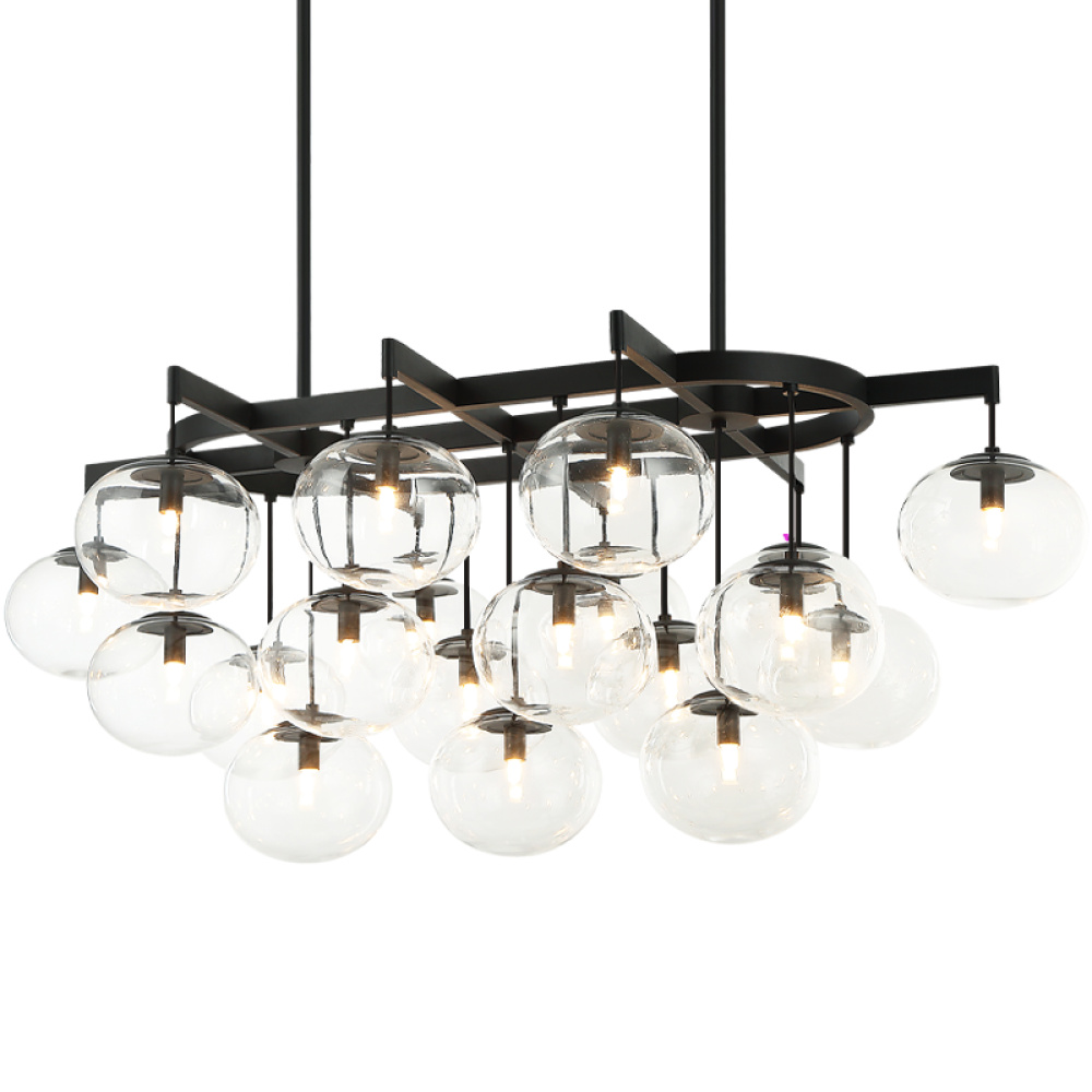 19 LT 46"L"BULBUS" MATTE BLACK/CEILING CLEAR GLASS CHANDELIER LED G9 LED 10W