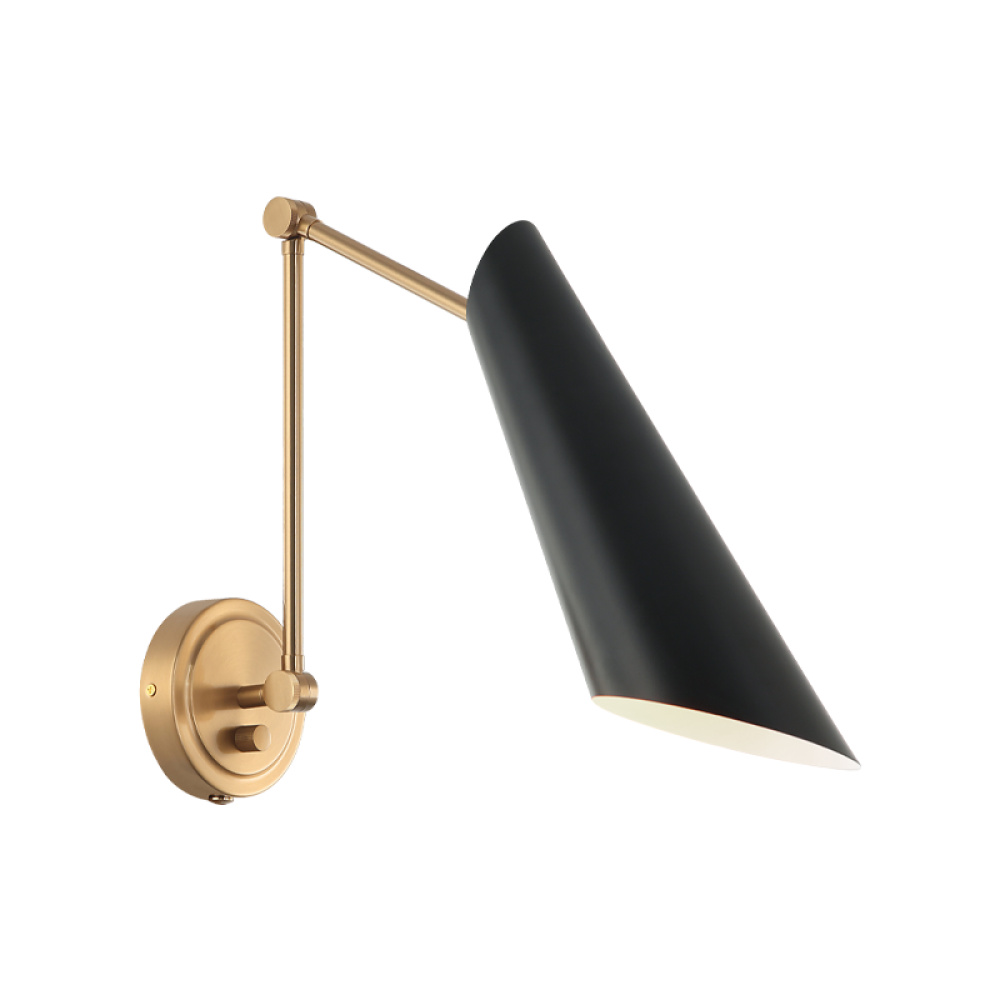 1 LT "BUTERA" AGED GOLD WALL SCONCE E26 - BLACK METAL SHADE