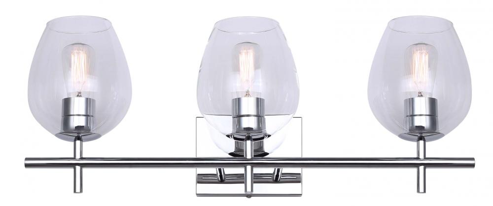 Elegant Chrome Finish with Clear Glass: The CAIN 3-Light Vanity features an elegant chrome finish with clear glass, adding a touch of sophistication to your bathroom.