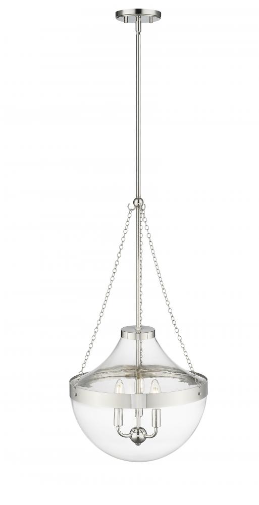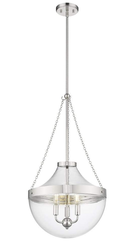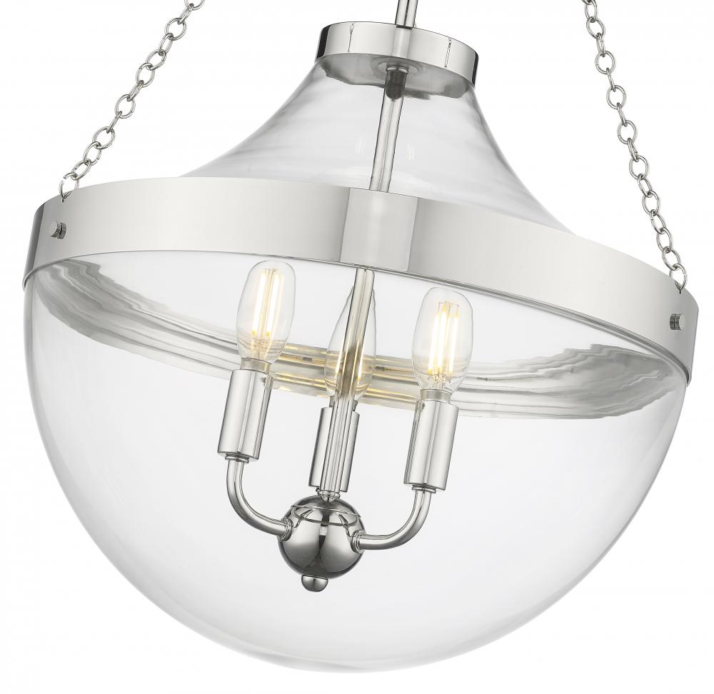 A modern spin on classic Edwardian-era parlor lighting, the Clarra Family of pendants blends seamlessly into any interior design look from neoclassic to ultra-modern. The clear glass bowl is designed to highlight vintage-style Edison bulbs and nestles in a steel framework suspended by decorative chains. Available in 1- and 3-light options, the fixtures are finished in either matte black, modern gold, or polished nickel.