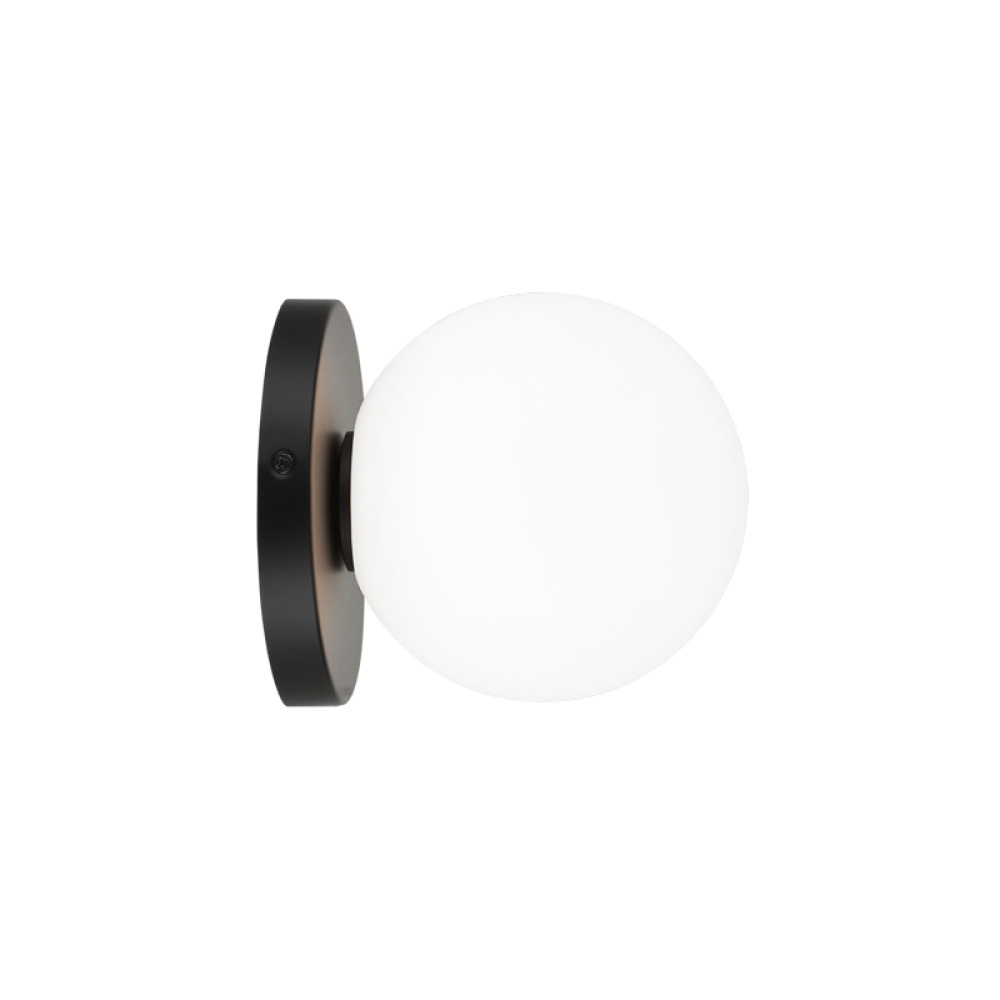 1LT 5.9"W "COSMO" WALL IRON+ALUMINUM-BK-OPAL GLASS