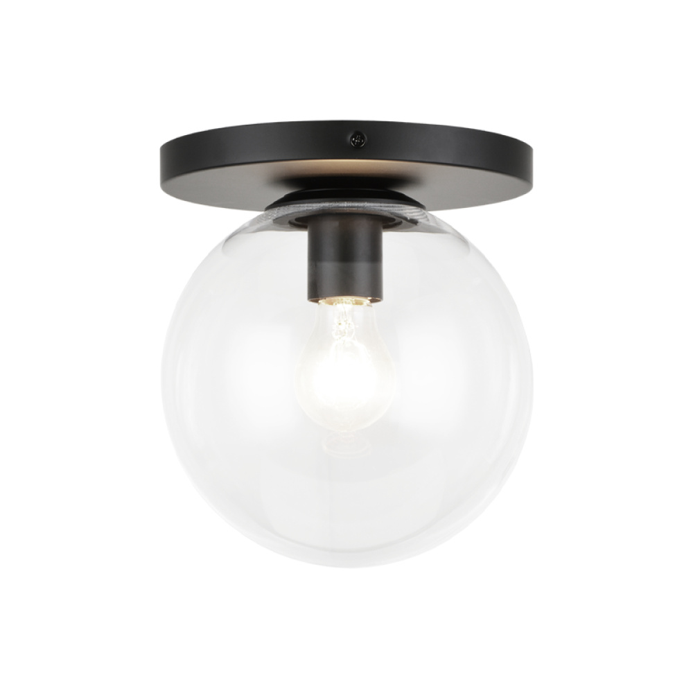 1LT 7.9"W "COSMO" WALL IRON+ALUMINUM-ABK-CLEAR GLASS