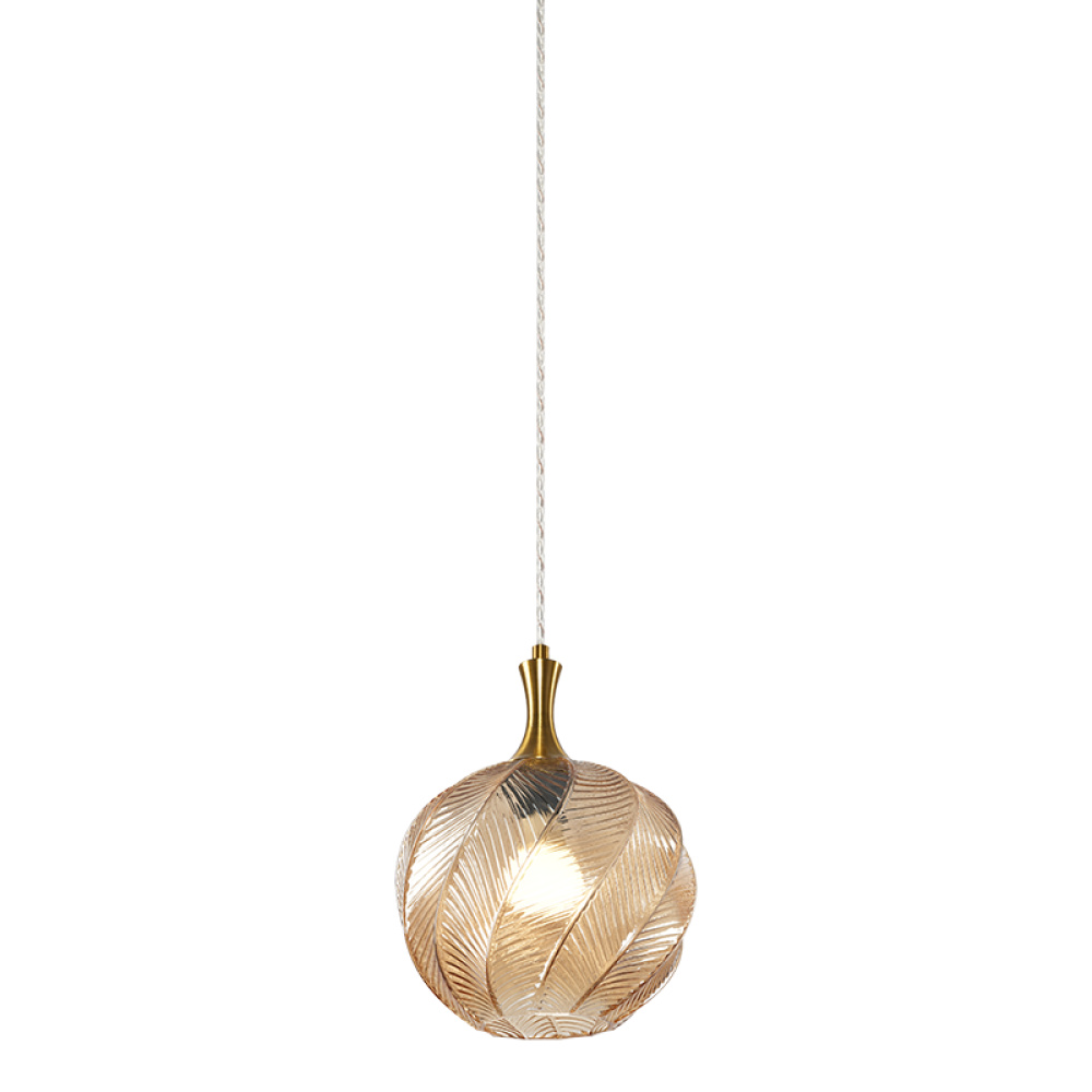 A single pendant in a Smoked or Amber-shaded glass, the Eesha would have a beautiful, organic look with a warm ambient glow. The design is crafted to resemble a softly curving leaf with delicate veins. Comes in 3 different shaped glass.