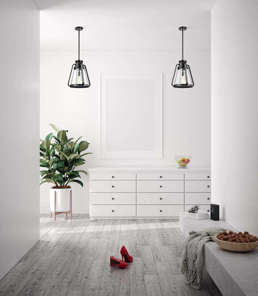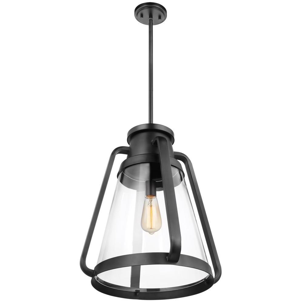 Everett; 1 Light 18 Inch Pendant; Matte Black with Clear Glass