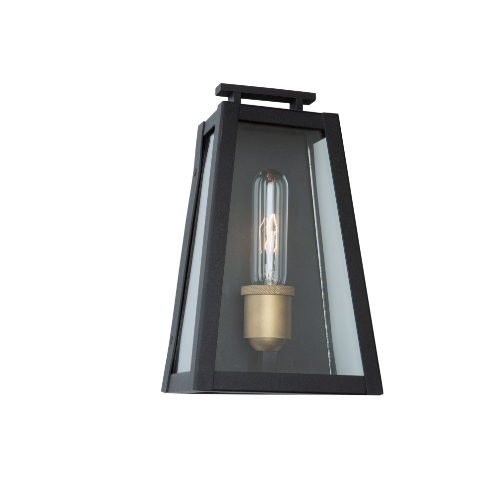 The "Charleston" collection exterior lighting features a triangular shape which has a black frame and interior which vintage gold. (This outdoor fixture is backed by our 25 year warranty on corrosion and 5 year warranty on paint defects - please see details)