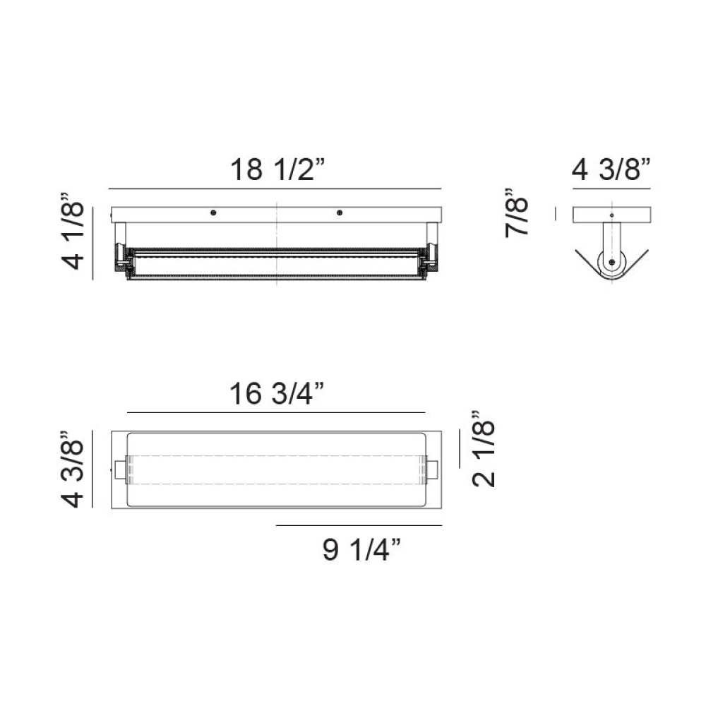 18.5"W x 4.38"H x 4.13"E