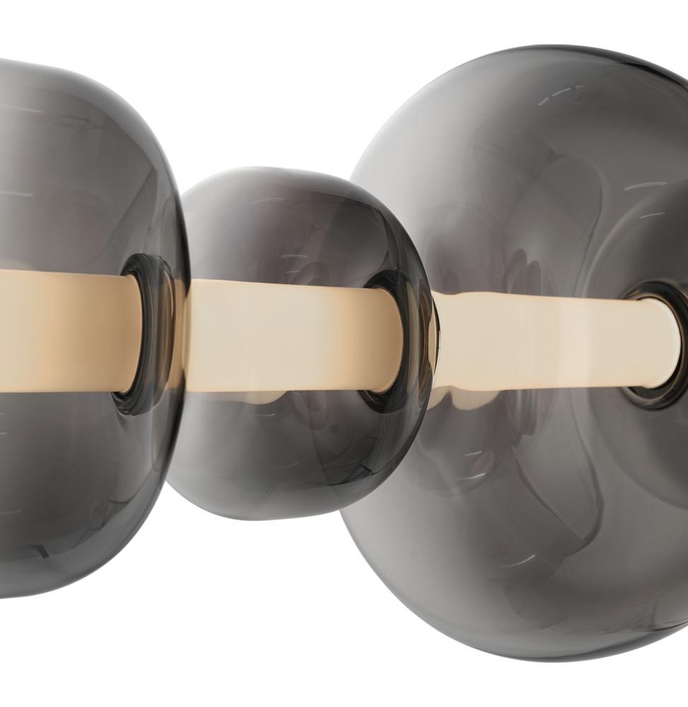 Illuminate your space with the Astra LED island chandelier, a striking embodiment of contemporary elegance and timeless allure. Featuring a radiant white LED inner tube, it is beautifully encased within smoke ombre glass layers, creating a mesmerizing gradient effect. The sleek black frame adds an elegant contrast, making this piece a captivating centerpiece for any interior.