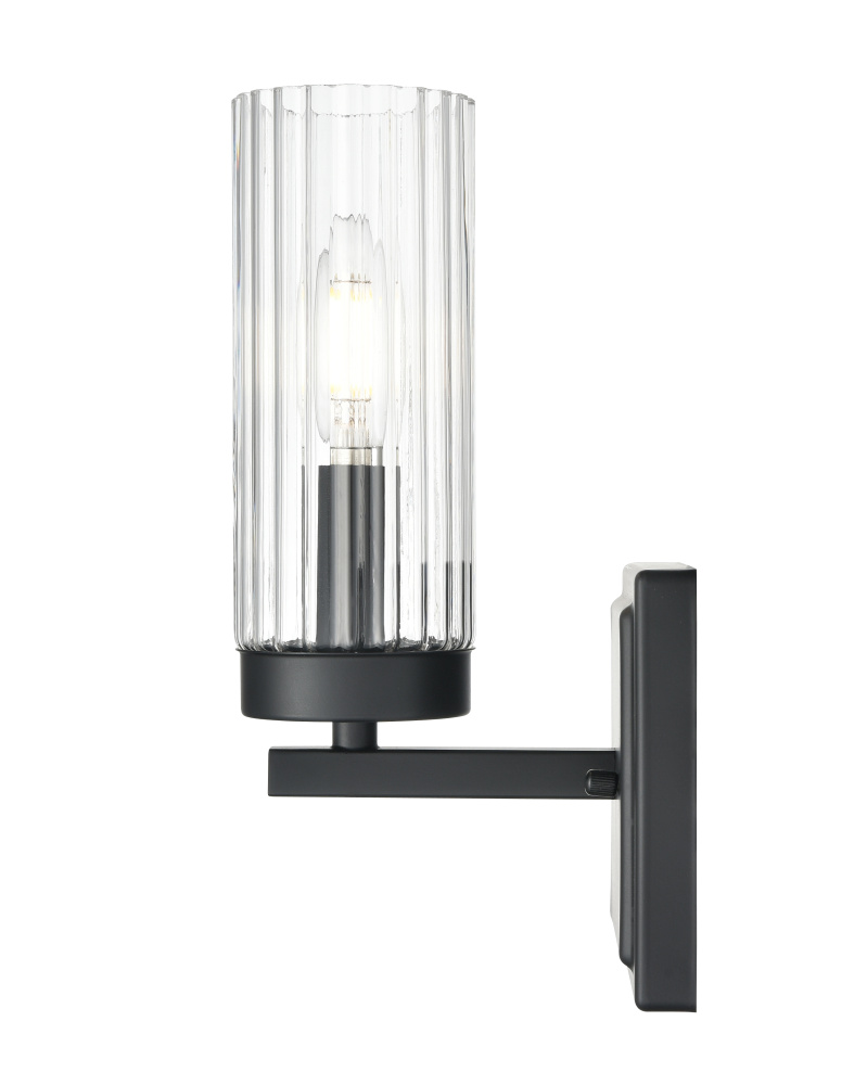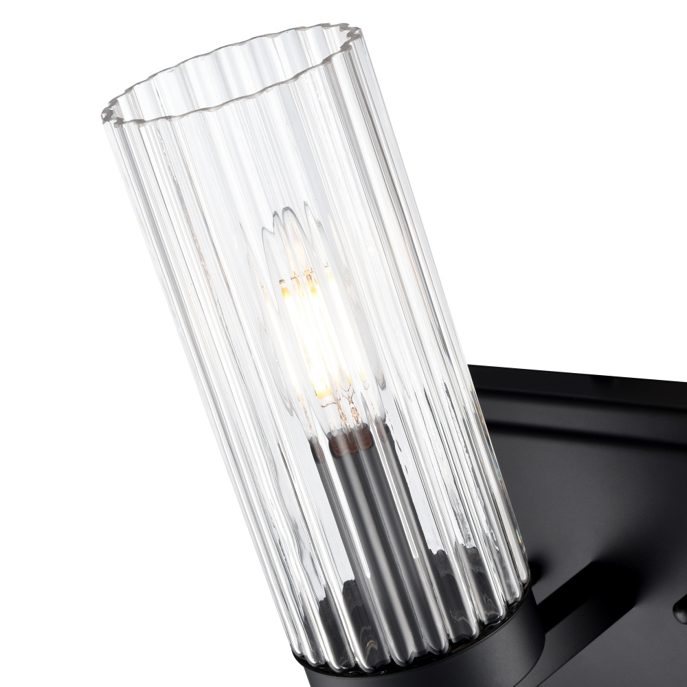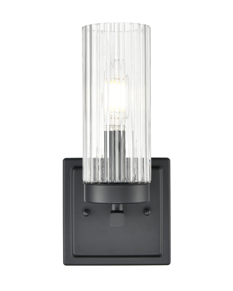 The Iversen Family of vanity and sconce lighting is distinguished by a blend of sleek lines accentuated with post-industrial style hardware. From the square backplate with inset design, to the sparkling clear reeded glass shades, the result is a dazzling play of light perfect for bath or hallway. These exceptional fixtures are available as 1-light sconces and 2-, 3-, or 4-light vanity lamps and are finished in brushed nickel, chrome, matte black, or vintage brass.