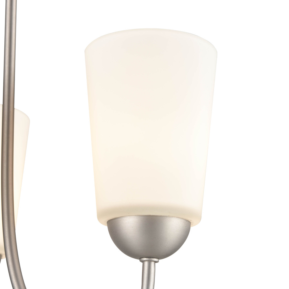 Effortless design enhanced with elegant and sweeping lines is the hallmark of the Ivey Lake Collection. Classically etched white glass globes provide the perfect enhancement for this stately design line with finishes available in either matte black or satin nickel.