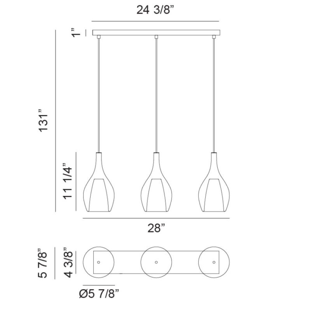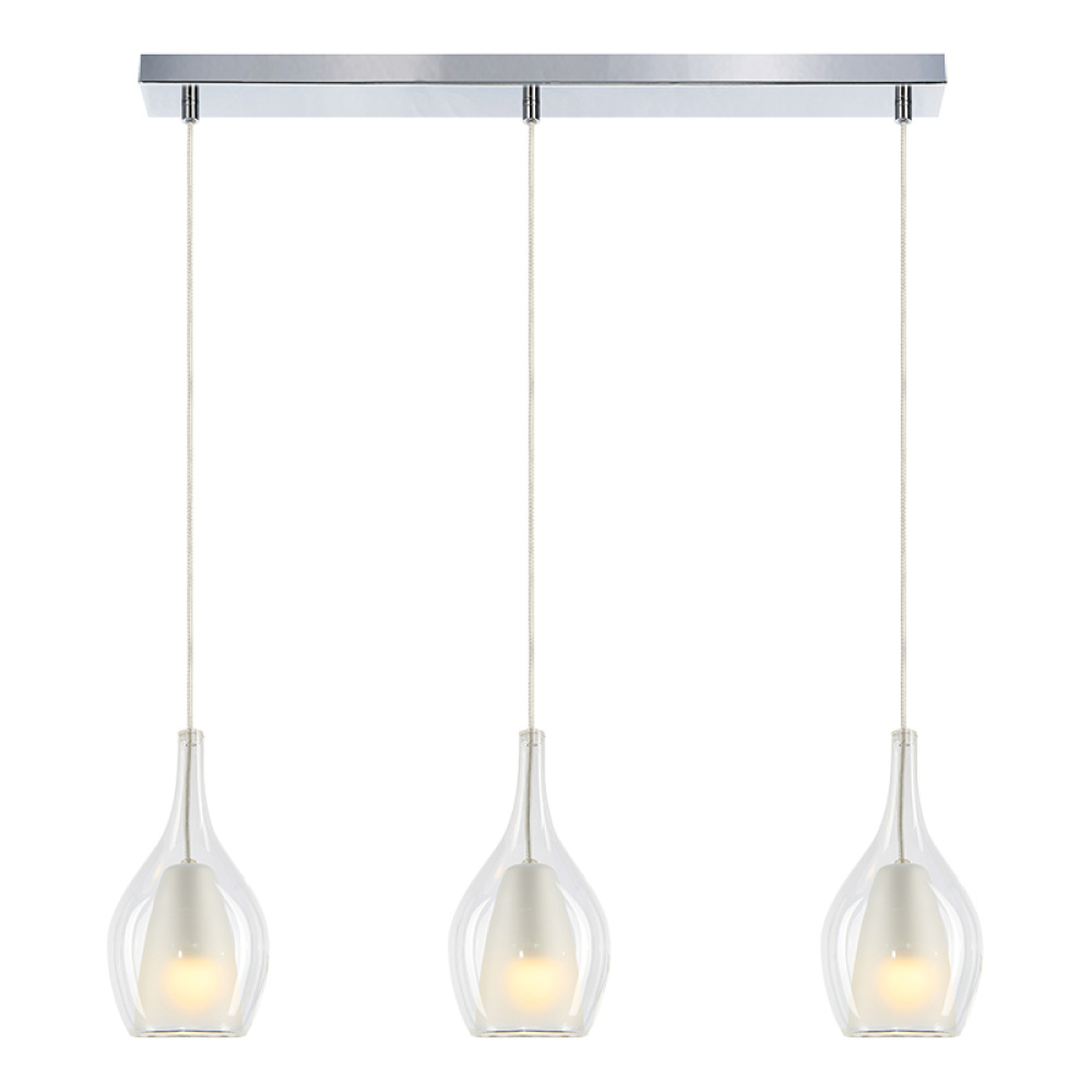 3 LT "JERICHO" 28"L RECTANGLE CANOPY CHROME+ CL GLASS PENDANT E26