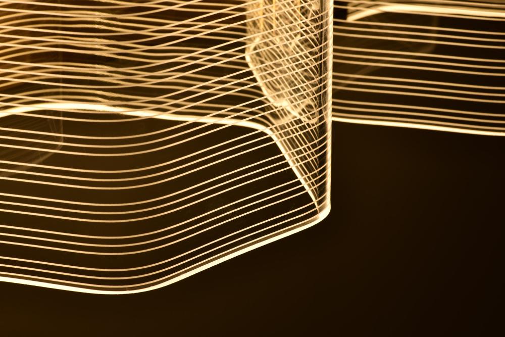 Unveil the art of Modern design with the Kenzo Collection, where bold geometric styling meets sculptural elegance. The parallel lines create a dynamic visual effect, blending symmetry with artistry for a look that captivates. Edge-lit acrylic shades provid